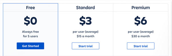 - مخازن خصوصی نامحدود: Bitbucket مخازن خصوصی نامحدود رایگان را برای افراد یا تیم های کوچک با حداکثر پنج عضو ارائه می دهد. برای افزایش مقیاس، طرح استاندارد را با 3 دلار/کاربر/ماه یا طرح Premium با 6 دلار/کاربر/ماه انتخاب کنید.